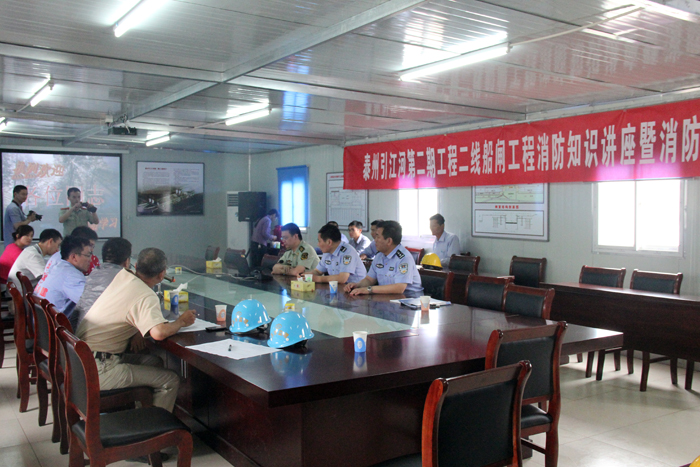 消防講座由泰州消防支隊(duì)水上大隊(duì)大隊(duì)長陳虎主講。他首先介紹了全國消防安全形勢,強(qiáng)調(diào)了加強(qiáng)消防工作的必要性。接著分析了近年來各地發(fā)生火災(zāi)的事故情況,用殘酷的事實(shí)、真實(shí)的數(shù)據(jù)和圖片資料讓員工們認(rèn)識到消防安全的重要性和火災(zāi)發(fā)生的危害性。他深入講解了火災(zāi)發(fā)生的特征、火災(zāi)的種類、滅火器的種類、適用范圍和使用方法等,并結(jié)合工程特點(diǎn)介紹了建筑施工消防安全法律法規(guī)和施工現(xiàn)場、生活辦公區(qū)消防安全知識。泰州市公安局水警支隊(duì)高港大隊(duì)大隊(duì)長黃飛、副大隊(duì)長王小鋒分別介紹了引江河二期工程施工現(xiàn)場周邊區(qū)域的治安情況,指出了項(xiàng)目部治安工作要點(diǎn),講解了施工現(xiàn)場危險(xiǎn)品儲存、電器、電焊設(shè)施安全使用保管等知識。最后進(jìn)行了現(xiàn)場知識解答。
