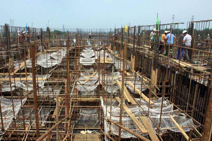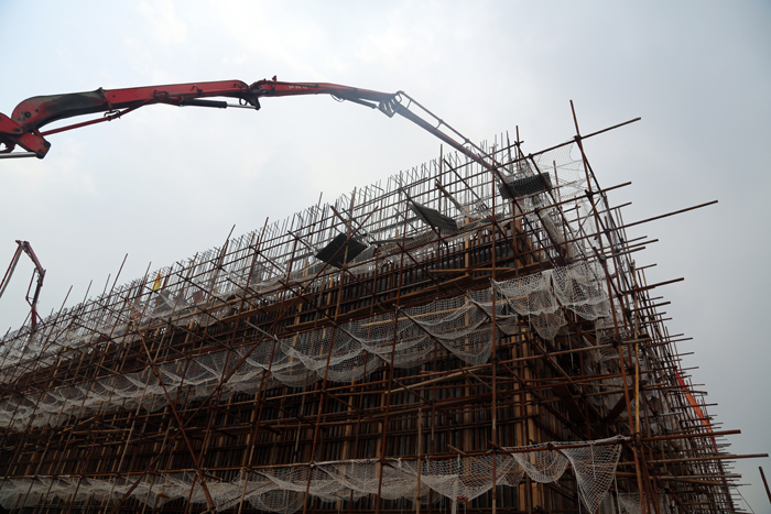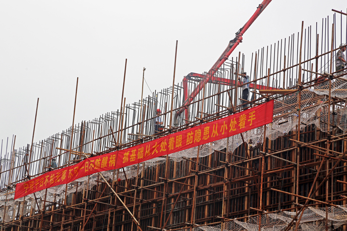 繼第一節(jié)沉井實(shí)施完成后,項(xiàng)目部立即進(jìn)入了緊張的第二節(jié)制作施工。項(xiàng)目部精心組織,科學(xué)管理,帶領(lǐng)全體員工頂住烈日和暴風(fēng)雨的考驗(yàn),迅速開展第二節(jié)沉井腳手架、模板和鋼筋作業(yè),確保如期具備大澆筑條件。