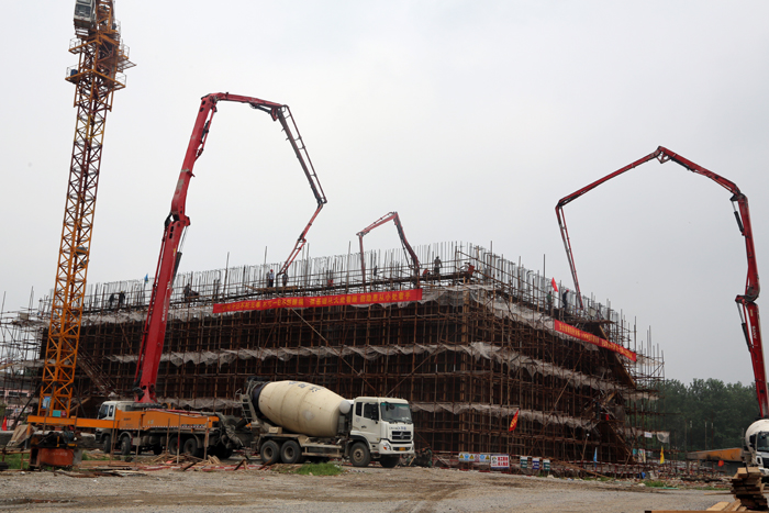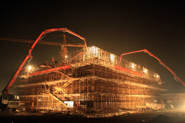 為抓住多雨期難得的晴天窗口,分公司與項(xiàng)目部經(jīng)過多次討論,決定調(diào)集新溝河江邊樞紐工地水石隊(duì)、鎮(zhèn)江諫壁閘工地水石隊(duì)和本工地水石隊(duì)三個(gè)小組共同實(shí)施大澆筑,以縮短澆筑時(shí)間,提高澆筑質(zhì)量。澆筑前通過三維立體分解圖進(jìn)行了技術(shù)交底及安全交底,讓每組人員都清楚了解澆筑的流程及安全注意事項(xiàng),從而確保了整個(gè)澆筑的順利進(jìn)行。