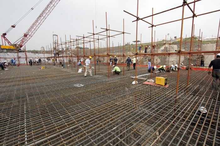 江蘇水建人的精神在此刻得到了充分的展示。項(xiàng)目部沒有絲毫氣餒,迎難而上。增加人員、設(shè)備資源投入,調(diào)整優(yōu)化現(xiàn)場作業(yè)方案,細(xì)排工期到每一天的每一個(gè)時(shí)點(diǎn)。大家成天成夜地泡在工地上組織施工作業(yè),無論是大雨如注,還是夜幕降臨,工地上總會(huì)見到他們的身影。老鋼筋隊(duì)長黃伯健同志,跟班指導(dǎo)工人綁扎鋼筋,連續(xù)幾天通宵作業(yè),3天就完成了160噸的鋼筋施工任務(wù),而黃伯健同志也累倒了。新來的幾個(gè)大學(xué)生,盡管剛剛走上工作崗位,但小伙子們肯學(xué)肯鉆肯吃苦,很快的適應(yīng)了高強(qiáng)度的工地生活,進(jìn)步很大。