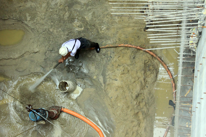 9月2日下午,隨著陣陣鞭炮聲,廖家溝取水口泵房沉井開始正式下沉。這是揚(yáng)州市廖家溝水源地取水口遷建工程的重要施工階段,沉井能否順利、如期的下沉到位,關(guān)系到遷建工程能否按期、安全的實(shí)現(xiàn)建設(shè)目標(biāo)。