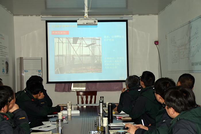 公司安技部副主任鄧新杰首先就新《安全生產(chǎn)法》的具體修改條款逐一作了講解,并結(jié)合大量事例,對貫徹《安全生產(chǎn)法》,提高工程施工安全管理水平作了指導。辦公室主任顧永明從文明工地的現(xiàn)場布置、臺賬資料整理、攝影攝像操作要點等方面,通過詳實的示例圖片,對創(chuàng)建文明工地的各項工作作了生動形象的講解。公司副總工程師、工程部、安技部主任章根興演示了施工現(xiàn)場關(guān)于安全防護的范例圖片,分別對圖中的不同隱患及正確做法作了細致深入地講解,大家從中獲得很大的收益和啟示。