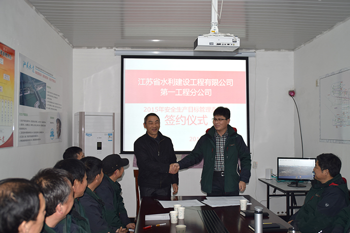 在學習會上,分公司還與項目部簽訂了2015年安全生產(chǎn)目標管理責任書。