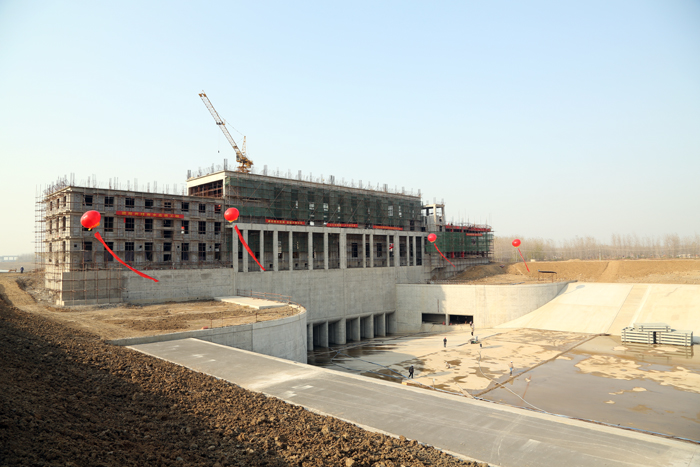 洪澤站是南水北調(diào)第三梯級(jí)泵站,工程包括新建洪澤站、新建擋洪閘、進(jìn)水閘和洪金地涵等主體工程,以及洪金南干渠改線、南干閘、北支渠、支渠首等影響工程。整個(gè)工程建設(shè)項(xiàng)目多,作業(yè)內(nèi)容豐富多樣,技術(shù)難度大,施工難度高。公司總經(jīng)理助理、洪澤站項(xiàng)目經(jīng)理?xiàng)畋笤跁?huì)上介紹了工程的施工管理情況,項(xiàng)目部針對(duì)工程特點(diǎn),從組織措施、力量配備、資源調(diào)配等環(huán)節(jié)入手,以科學(xué)、周密的技術(shù)方案為保障,以創(chuàng)省(部)優(yōu)工程為目標(biāo),通過嚴(yán)格、有序的施工組織,把好工程質(zhì)量關(guān)、安全關(guān)、文明關(guān)和進(jìn)度控制,實(shí)現(xiàn)了各項(xiàng)預(yù)定目標(biāo)。