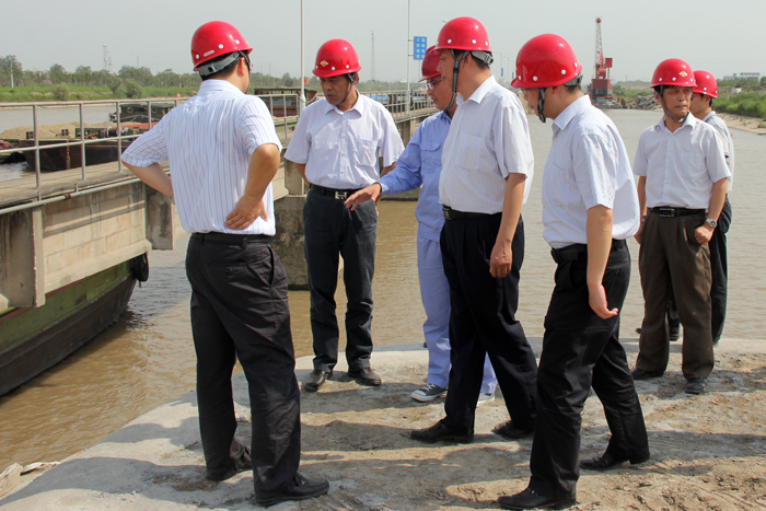 李陸玖一行實地查看了工程建設(shè)現(xiàn)場,重點檢查了二線船閘度汛準備及上、下游施工圍堰,聽取了馬志華局長、顧明如副總經(jīng)理對工程建設(shè)、施工情況的匯報。李陸玖組長指出,泰州引江河第二期工程是全省關(guān)注度較高的重點水利工程,參建各方要精心組織、落實措施、確保安全。一要加強安全管理。要落實安全措施,保證工程安全、生產(chǎn)安全、資金安全和人員安全。二要確保安全度汛。針對長江流域的防汛特點,以及可能遭遇的臺風情況,思想上高度警惕,組織上落實到位,積極做好各項應對預防措施。三要強化廉政建設(shè)。通過加強教育、建立一整套規(guī)范制度等各項措施,切實加強重點工程的廉政建設(shè),營造清正廉潔的良好氛圍。四要深入推進政風行風建設(shè),貫徹落實全省水利系統(tǒng)開展“四位一體”評議政風行風創(chuàng)新行動的相關(guān)要求。重點水利工程是水利行業(yè)面向基層百姓的一扇窗口。在工程建設(shè)中,特別是在涉及到老百姓切身利益的征地拆遷中,要以人為本,妥善處理,充分展現(xiàn)水利行業(yè)良好形象。