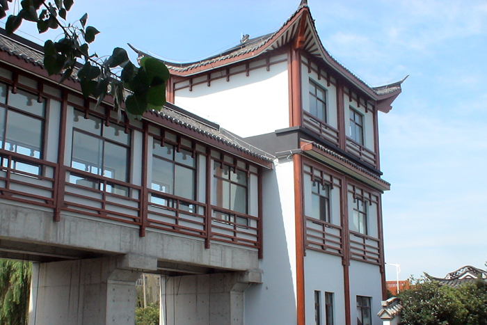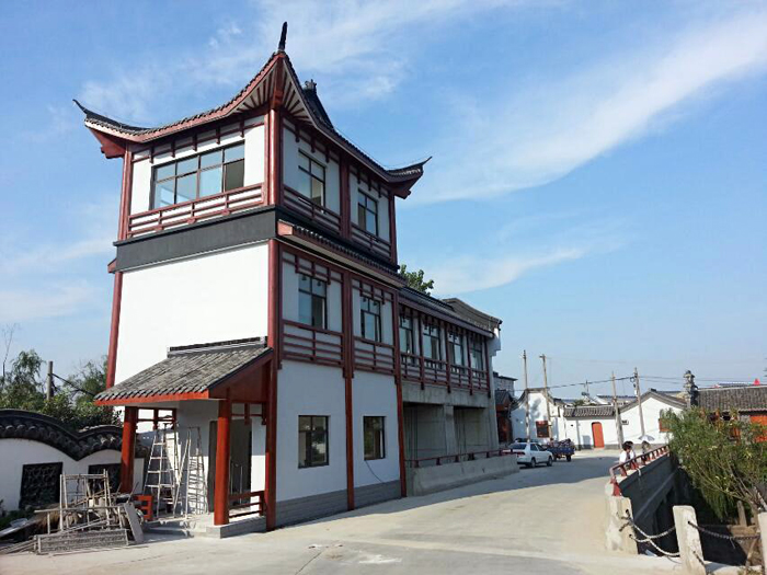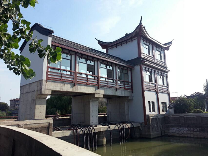 該工程又是邵伯湖大運(yùn)河故道的北起點(diǎn)。改造后的新閘飛檐翹壁,古韻濃郁,現(xiàn)代水利功能建筑與古典建筑交相輝映。