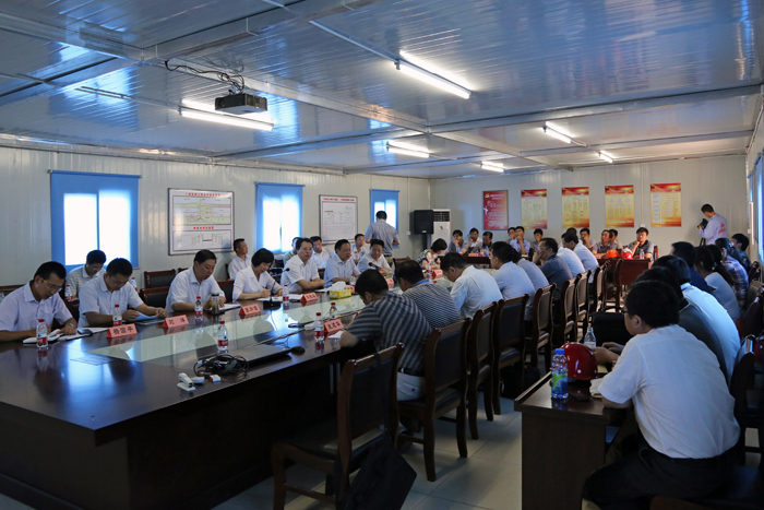 在我公司二線船閘工地會議室里,韓全林聽取了工程建設(shè)情況的匯報,對工程參建各方精心組織、科學(xué)安排,有力有序推進(jìn)工程建設(shè)以及施工現(xiàn)場管理、黨支部活動、文明創(chuàng)建等各項(xiàng)工作給予充分肯定,并對全面推進(jìn)工程建設(shè)管理提出希望。韓全林指出,引江河二期工程是省委、省政府確定的沿海大開發(fā)戰(zhàn)略中重點(diǎn)骨干水源工程,一要注重工程質(zhì)量和安全生產(chǎn),全力以赴強(qiáng)化施工質(zhì)量管理,優(yōu)化施工計劃,合理調(diào)配施工力量,科學(xué)安排施工作業(yè),認(rèn)真落實(shí)質(zhì)量保證措施,牢固樹立“以人為本、安全發(fā)展”理念,確保施工安全和各項(xiàng)節(jié)點(diǎn)目標(biāo)的實(shí)現(xiàn)。二要注重發(fā)揮黨員干部先鋒性,深入開展黨的群眾路線教育實(shí)踐活動,黨員干部要積極聽取施工各方意見,緊密聯(lián)系群眾、依靠群眾,調(diào)動廣大建設(shè)者的積極性。黨員干部要在工程建設(shè)中發(fā)揮先鋒模范作用,加強(qiáng)黨組織的凝聚力和戰(zhàn)斗力,引領(lǐng)引江河二期工程建設(shè)掀起新高潮。三要注重做好群眾工作,避免突發(fā)群體事件發(fā)生,要妥善處理好工程期間各類矛盾,依法維護(hù)好相關(guān)各方的切身利益。四要注重把工程一線作為人才培養(yǎng)基地,培養(yǎng)年輕一代水利建設(shè)人才,使工程一線成為優(yōu)秀水利建設(shè)管理人才成長、儲備這地,爭取建一批工程,培養(yǎng)一批人才。五要注重提升科研水平。要加大科研創(chuàng)新研究力度,善于總結(jié)施工管理經(jīng)驗(yàn),通過一個工程,研究出一批成果。