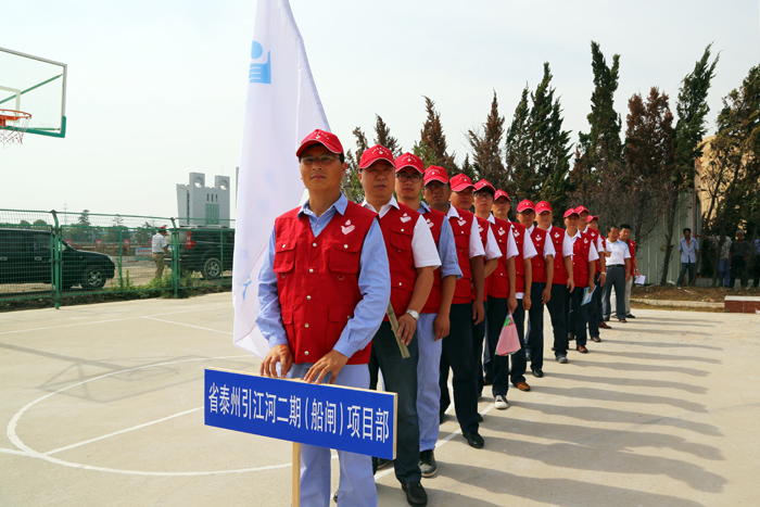 慰問活動開始前,由省泰州引江河管理處牽頭組織的“保護(hù)引江河”志愿者服務(wù)活動在我公司二線船閘項(xiàng)目部廣場召開了動員大會。我公司黨委副書記、工會主席姜啟生、副總經(jīng)理、引江河二線船閘工程項(xiàng)目經(jīng)理顧明如帶領(lǐng)項(xiàng)目部志愿者參加會議,并持續(xù)在一線工地開展志愿服務(wù)活動。