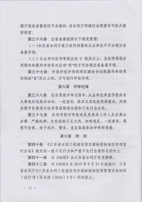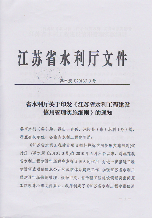 日,省水利廳發(fā)布了《江蘇省水利工程建設信用管理實施細則》(蘇水規(guī)