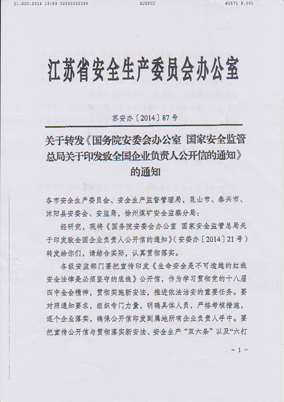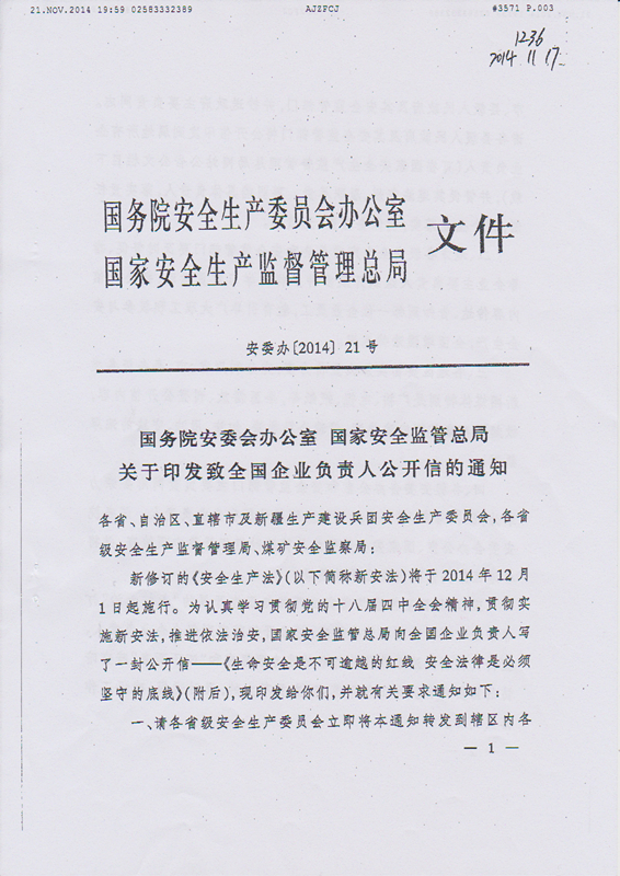 關(guān)于轉(zhuǎn)發(fā)《國(guó)務(wù)院安委會(huì)辦公室 國(guó)家安全監(jiān)管總局