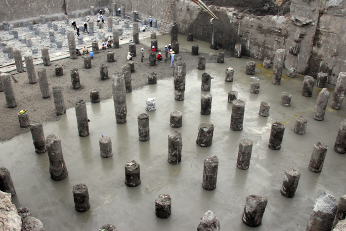 引江河二線船閘開工以來(lái),工程建設(shè)受到了各級(jí)領(lǐng)導(dǎo)的高度關(guān)注和重視。在二線船閘施工期,保證一線船閘的正常通航和工程安全、不均質(zhì)地基上的深井降水、閘首開挖的深基坑支護(hù)、多種地基和防滲處理結(jié)構(gòu)交叉等技術(shù)難題,一個(gè)接一個(gè)考驗(yàn)著建設(shè)者的智慧和能力。很多參加過(guò)一期工程建設(shè)的老領(lǐng)導(dǎo)和專家,多次叮囑、提醒一線施工人員注意上述問(wèn)題,幫助分析情況,研究措施方案,給予了有力的技術(shù)支撐。
