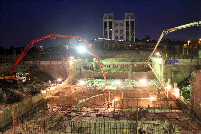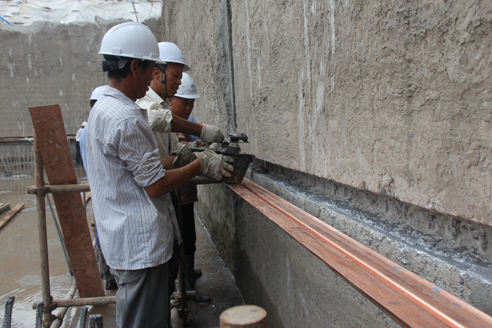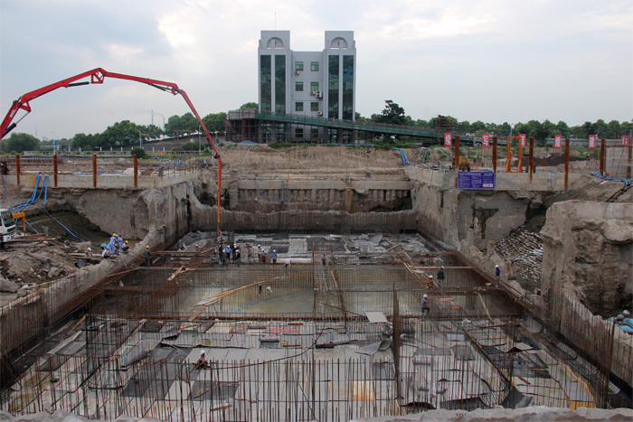 在引江河二線船閘工地,公司近年來(lái)添置的多臺(tái)現(xiàn)代化大型施工設(shè)備大顯身手,施工效率和工藝水平有了飛躍式地提高,也在一定程度上緩解了目前建筑業(yè)市場(chǎng)上普遍存在的用工難的問(wèn)題。但客觀條件的改善并不因此降低他們的主觀能動(dòng)性。江蘇水建人傳承和發(fā)揚(yáng)的還是“鐵軍”精神,這支肯打硬仗、會(huì)打硬仗、能打贏硬仗的江蘇水利骨干施工隊(duì)伍再一次經(jīng)受了大自然最嚴(yán)苛地考驗(yàn)。從項(xiàng)目經(jīng)理到操作工人,從技術(shù)人員到后勤人員,不管是烈日當(dāng)空,還是挑燈夜戰(zhàn),他們?nèi)繄?jiān)守在現(xiàn)場(chǎng)。高溫烈日里,安全帽下滿臉汗珠象雨水不停地滴下,工作服上的鹽霜結(jié)了一層又一層,他們沒叫一聲苦,沒喊一聲累。省水利廳、二期工程建設(shè)局、引江河管理處和公司的各級(jí)領(lǐng)導(dǎo)多次到工地慰問(wèn),送來(lái)清涼、送來(lái)知識(shí),更送來(lái)了艱苦奮斗、團(tuán)結(jié)拼搏的精神。工程的基坑封底、鑿除樁頭、安裝止水、綁扎鋼筋、晝夜大澆筑,沒有一個(gè)環(huán)節(jié)不經(jīng)過(guò)汗水的浸泡。經(jīng)過(guò)高溫洗禮的上閘首底板,已不單單是一個(gè)水工建筑物部件,它的上面名副其實(shí)地刻上了江蘇水建人戰(zhàn)天斗地的英勇印跡。
