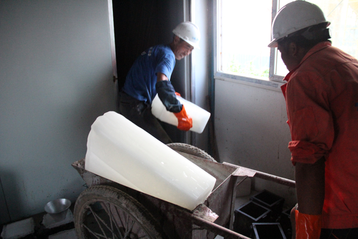 各級(jí)領(lǐng)導(dǎo)帶來(lái)的慰問(wèn)品,項(xiàng)目部第一時(shí)間發(fā)放到工人手中,數(shù)量不夠的,管理人員不發(fā),一切保證工人需要;會(huì)議室等有空調(diào)的公共場(chǎng)所24小時(shí)向工人開放,盡量保證工人的睡眠;安技員每次上班守在安全通道出入口,督促工人們服用防暑藥品;由于作息時(shí)間調(diào)整,工人午飯和晚飯間隔時(shí)間較長(zhǎng),項(xiàng)目部每天下午五點(diǎn)免費(fèi)向工人發(fā)放包子,保證其體力……高溫酷暑,何懼汗流?!拔覀兛嘁稽c(diǎn)、累一點(diǎn)不算啥,只要能早一點(diǎn)完成工程任務(wù),我們不怕烈日考驗(yàn)”。項(xiàng)目部工種隊(duì)長(zhǎng)說(shuō)出了工人們的心聲。