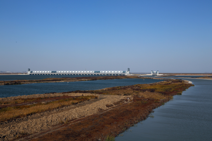 就在上星期,隨著大堤瀝青道路的施工完成,這個(gè)2008年11月開(kāi)工,歷時(shí)五年建設(shè)的三洋港樞紐工程完成了全部施工任務(wù),長(zhǎng)近1公里的節(jié)制閘宛如一條巨龍呈現(xiàn)在人們眼前,其壯觀、雄偉、精致、秀美得讓人贊嘆不已。而這背后,是堅(jiān)強(qiáng)的江蘇水建人在這蘆葦叢生、荒蕪人煙的苦寒地帶,面對(duì)地質(zhì)條件特別差、工程量特別大、工作面特別廣、不確定因素特別多等困難,冒著寒冷的嚴(yán)冬破冰而作,頂著盛夏的驕陽(yáng)揮汗而行。是他們牢記責(zé)任和使命,規(guī)范管理,創(chuàng)新工藝,攻堅(jiān)克難,運(yùn)籌帷幄,決戰(zhàn)黃海之濱,又一次為江蘇水利奉獻(xiàn)了一部精品力作。