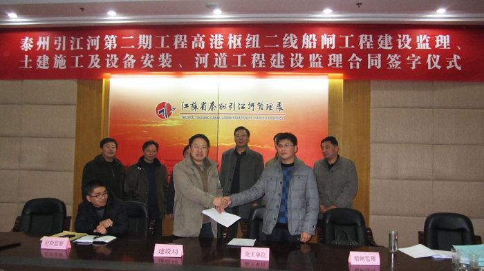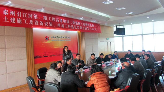 2012年12月11日下午,泰州引江河二線船閘施工合同談判、簽約暨開工動員會在省泰州引江河管理處順利召開,泰州引江河二期工程建設(shè)局局長馬志華、副局長張政田、陳衛(wèi)沖等建設(shè)單位領(lǐng)導(dǎo)與設(shè)計、監(jiān)理、施工等單位領(lǐng)導(dǎo)出席會議。公司總經(jīng)理夏國春、副總經(jīng)理顧明如參加合同談判與簽約活動。