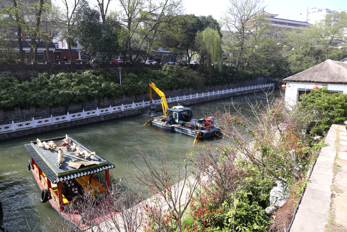 在揚(yáng)州最美麗的季節(jié)即將到來(lái)之際,水機(jī)公司調(diào)集兩棲式清淤機(jī),對(duì)御碼頭至瘦西湖水上游覽線進(jìn)行清淤,為揚(yáng)州煙花三月經(jīng)貿(mào)旅游節(jié)疏通黃金水道。