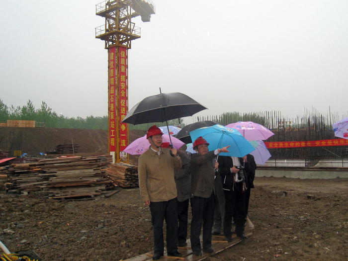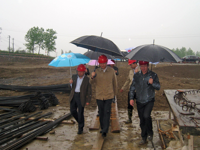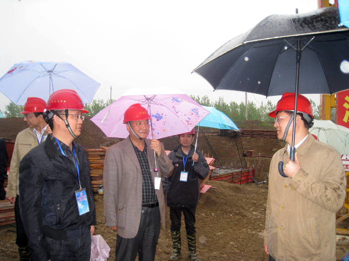 4月11日下午,省水利廳李亞平廳長(zhǎng)冒雨來(lái)到我公司金湖石港泵站工程工地檢查指導(dǎo)工程建設(shè)。我公司夏國(guó)春董事長(zhǎng)、副總經(jīng)理、石港泵站工程項(xiàng)目經(jīng)理?xiàng)畋笸九阃瑱z查。