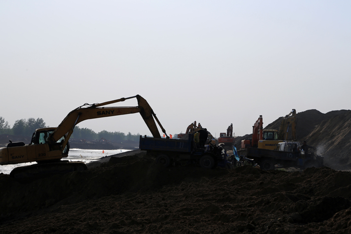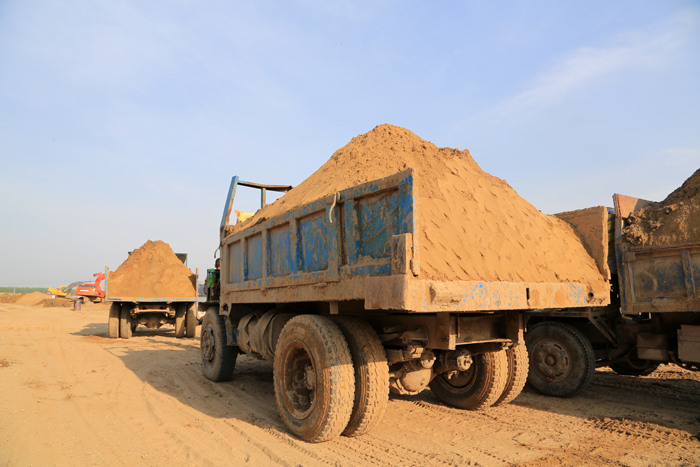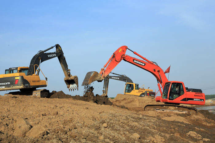145萬方土,在過去肩挑手扛的年代,需要一年時間;在現(xiàn)在的機械化作業(yè)情況下,至少需要100天。而業(yè)主給項目部的時間僅為60天,幾乎是不可能完成的任務(wù)。公司的鐵軍精神再次被發(fā)揮到極致。項目部將工程分為5個施工區(qū),組織了60臺挖掘機、15臺推土機、11臺裝載機、140臺運輸車晝夜不停地展開施工。項目部采取加班加點、班組競賽、獎快罰慢、快者多干等激勵手段,加快工程進展。工程高峰期日開挖土方達6萬方,創(chuàng)下了我公司土方施工的新紀錄。