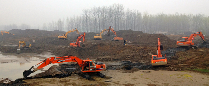本站訊,經(jīng)過40天高強度的搶工,由我公司房建分公司承建的徐州市睢寧段黃河故道干河(峰山閘至劉集橋)治理工程B標段,目前已完成了河道土方開挖。施工高峰期日開挖土方6萬方,創(chuàng)下了我公司施工新記錄。