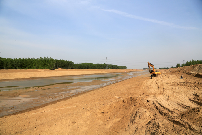 目前工程正進行河道上部土方修整和橋梁等建筑物的施工,預(yù)計可于10月底前完成全部施工任務(wù)。