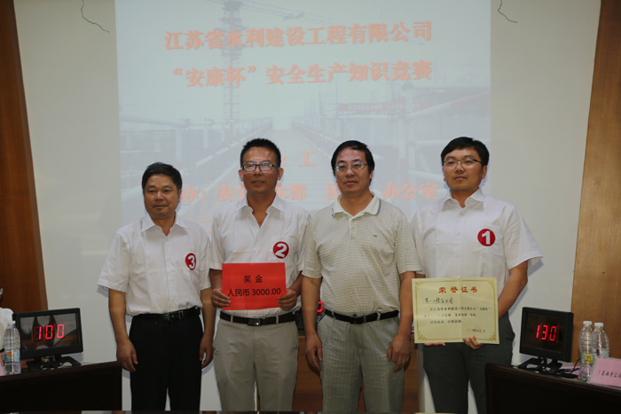 競賽分為必答題、觀眾互動答題、搶答題三個環(huán)節(jié),競賽內(nèi)容涵蓋安全生產(chǎn)法律法規(guī)、公司安全生產(chǎn)管理制度、安全生產(chǎn)實務(wù)案例等與水利工程施工管理密切相關(guān)的內(nèi)容。在形式上,本次競賽也實現(xiàn)了創(chuàng)新,不指定競賽范圍,不提供題庫,各代表隊選手通過電腦選擇題號進行答題,在體現(xiàn)公平、公正的同時,更展現(xiàn)了各參賽選手的硬實力。通過幾輪激烈地角逐,最終第一工程分公司代表隊、水機公司代表隊、基礎(chǔ)分公司代表隊分獲集體一、二、三等獎,羅圣海同志榮獲“最佳風(fēng)采獎”,劉東同志榮獲“最佳優(yōu)秀隊員獎”,緒星飛同志榮獲“最佳表現(xiàn)獎”。