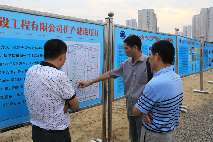8月26日下午,揚(yáng)州市委書(shū)記謝正義來(lái)到我公司廣陵產(chǎn)業(yè)園新基地建設(shè)工地,調(diào)研項(xiàng)目建設(shè)情況。謝書(shū)記指出,公司要抓住水利大投入的機(jī)遇,加快擴(kuò)產(chǎn)項(xiàng)目的建設(shè),擴(kuò)大水利機(jī)械設(shè)備產(chǎn)業(yè)規(guī)模,做大做強(qiáng)企業(yè)。