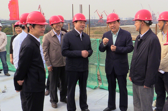 在江邊樞紐工地,徐鳴詳細(xì)了解了工程建設(shè)進(jìn)度。目前該工程船閘閘室主體已完成,正在進(jìn)行上下閘首、導(dǎo)航墻等部位施工;閘站工程于10月初開(kāi)始地表清理和初期土方開(kāi)挖,正在填筑下游施工圍堰。徐鳴對(duì)工程建設(shè)所取得的成績(jī)表示肯定,希望施工單位在加快工程建設(shè)進(jìn)度的同時(shí),保證工程質(zhì)量,確保施工安全。同時(shí)他要求地方政府善始善終,加快做好征地拆遷等工作,為工程建設(shè)創(chuàng)造和諧的環(huán)境。