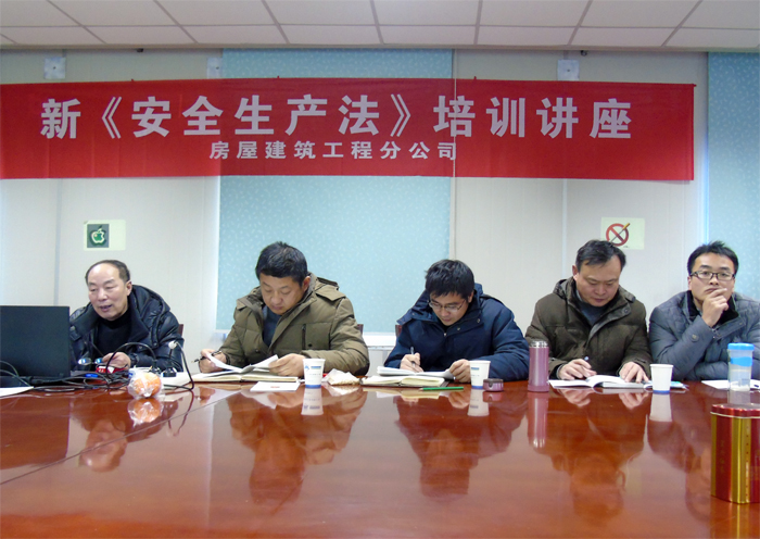 2014年12月31日下午,房屋建筑工程分公司組織管理、技術(shù)人員和部分現(xiàn)場(chǎng)兼職安全管理員系統(tǒng)學(xué)習(xí)了新《安全生產(chǎn)法》。公司副總工程師、安技部主任章根興針對(duì)《安全生產(chǎn)法》修改前后具體內(nèi)容和要求的變化,進(jìn)行詳細(xì)地講解,對(duì)相關(guān)條款作了重點(diǎn)說明,并穿插了相關(guān)案例的講解。