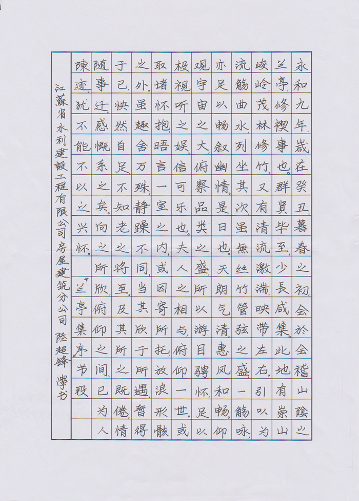 近日,由省水利廳團(tuán)委舉辦的廳系統(tǒng)青年書法比賽評(píng)選結(jié)果公布,公司5名參賽選手分別獲得一、二等獎(jiǎng)。