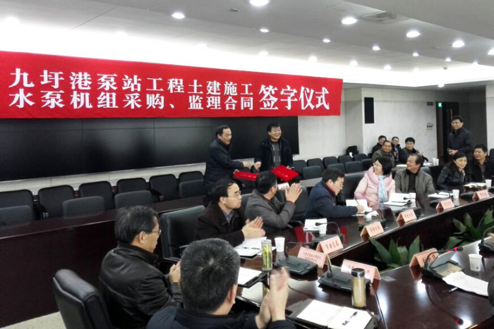 1月27日上午,我公司剛中標(biāo)的南通市九圩港提水泵站工程合同簽字儀式在南通市政府會議室舉行。該工程總指揮、南通市委常委秦厚德等領(lǐng)導(dǎo),我公司總經(jīng)理時愛祥、副總經(jīng)理顧明如等出席了簽字儀式。