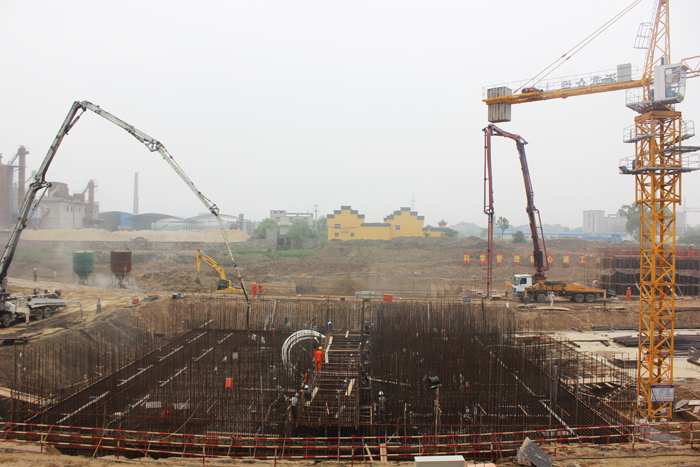 該工程泵站設計流量60m3/s,安裝豎井貫流泵機組4臺套,不設備用機組;站內(nèi)4臺機組呈一列式布置,設置一塊底板。底板尺寸(長×寬)分別為31.5米×32.1米,厚1.5米,本次澆筑混凝土1800多方。