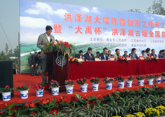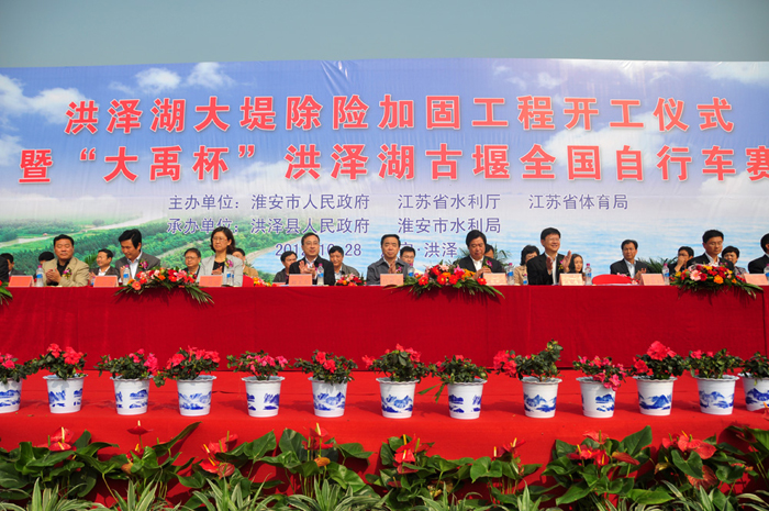 10月28日上午,洪澤湖大堤除險加固工程開工儀式在風(fēng)景如畫的洪澤湖畔隆重舉行。水利部淮河水利委員會副主任劉玉年出席儀式并致辭,省水利廳廳長呂振霖、副廳長李亞平及淮安市委等領(lǐng)導(dǎo)出席了開工典禮。我公司董事長朱學(xué)林在儀式上發(fā)言。