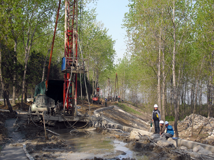洪澤湖大堤除險加固工程在江蘇省洪澤湖水利工程管理處范圍內(nèi),主要為省管段堤防防滲處理工程。我公司基礎工程分公司承建標段