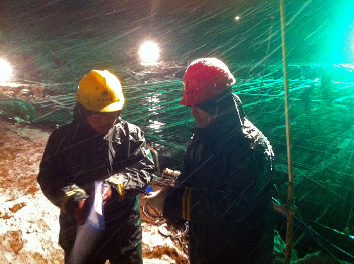 為了實(shí)現(xiàn)“531”工期目標(biāo),公司前后方協(xié)同作戰(zhàn),一切從講政治的高度出發(fā),集中優(yōu)勢資源,全面加大投入。朱學(xué)林董事長與項(xiàng)目部員工一起過春節(jié),多次到工地研究落實(shí)方案,為大家鼓勁打氣;夏國春總經(jīng)理、陳勤副總經(jīng)理等領(lǐng)導(dǎo)多次到工地研究解決技術(shù)難題,督查進(jìn)度、質(zhì)量和安全生產(chǎn)工作;常務(wù)副總經(jīng)理時愛祥同志長駐工地,協(xié)調(diào)全公司資源保證搶工需要;黨委副書記、工會主席姜啟生及時到工地一線慰問,送來組織的溫暖和關(guān)懷;公司工程部、安全技術(shù)部、財務(wù)部、人力資源部等職能部門,水機(jī)公司、機(jī)安分公司、設(shè)備租賃分公司等兄弟單位與泗陽閘項(xiàng)目部齊心協(xié)力,共同拼搏。特別是泗洪站、太浦閘、金湖站、淮南取水工程等多個兄弟項(xiàng)目部,在自己工期也十分緊張的情況下,抽調(diào)了150多名熟練工人,參加泗陽閘施工大會戰(zhàn),奏響了一篇團(tuán)結(jié)奮戰(zhàn)的和諧樂章。泗陽閘水下工程的如期完成,又一次體現(xiàn)了公司不折不扣完成廳重點(diǎn)工程任務(wù)的執(zhí)行力和效率,體現(xiàn)了公司強(qiáng)大的綜合作戰(zhàn)能力,體現(xiàn)了全局一盤棋的凝聚力和創(chuàng)造力。