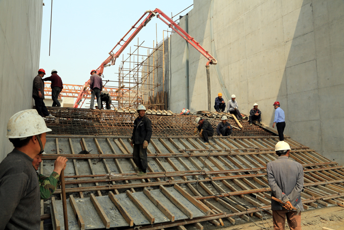 大年三十,一個合家團(tuán)聚的日子。泗陽閘工地卻是一派繁忙景象,建設(shè)處主任丁淮波、副主任李太民、陳作義、公司董事長朱學(xué)林、常務(wù)副總經(jīng)理時愛祥等同志還在參加項(xiàng)目部的生產(chǎn)會,針井降水效果預(yù)計怎么樣?下一步采取何種措施?建設(shè)資金如何落實(shí)?材料如何準(zhǔn)備?春節(jié)后大規(guī)模的施工人員如何組織……不斷地發(fā)問,一一地研究。嚴(yán)峻的形勢倒逼著人們,即使春節(jié)也不能有一絲一毫的放松。他們知道,只有施工組織的思路更加明確,計劃更加科學(xué),方案更加嚴(yán)密,措施更加有力,決策更加果斷,才能打開局面,贏得主動。