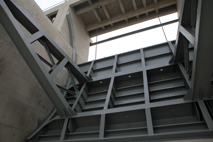 除了大量的人力、物力投入外,超常規(guī)的技術(shù)措施為工程快速推進(jìn)發(fā)揮了關(guān)鍵作用。閘門雙向支鉸座、弧形閘門軌道預(yù)埋是極易影響工期的一道工序,項(xiàng)目部留給水機(jī)公司每聯(lián)孔預(yù)埋的時間只有48小時。要在