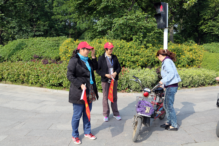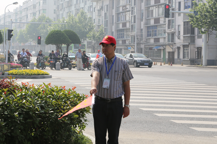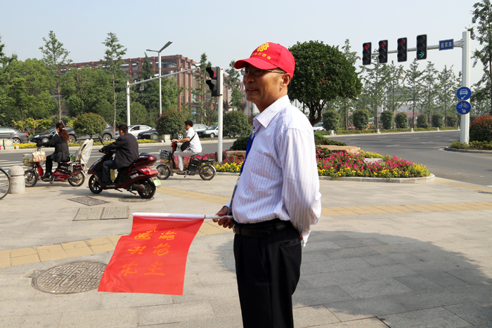 紅燈亮起,他們伸直手臂,示意行人止步不要越線;綠燈亮起,他們又快速揮動手臂,示意行人前行。他們頭戴“學雷鋒志愿者”小紅帽,揮動“文明出行,幸福揚州”小紅旗,配掛“志愿服務證”,活躍在迎賓崗四周。在繁忙的交通路口,行人和車輛各行其道、井然有序。他們用微笑和愛心勸導市民養(yǎng)成文明出行的好習慣,營造一個安全、暢通、有序的交通環(huán)境,形成了一道文明的風景線。