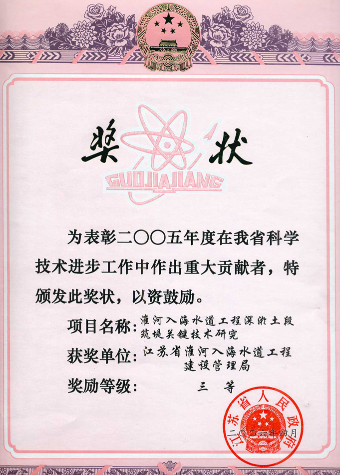 公司實施科技興企戰(zhàn)略,建立完善科技創(chuàng)新體系,形成了一批具有自主知識產(chǎn)權(quán)的科技成果或工法。公司成立了國內(nèi)水利系統(tǒng)首家企業(yè)院士工作站,兩次承擔(dān)修編了江蘇水利工程定額,1項工程獲中國土木工程詹天佑獎;6項科技成果獲大禹水利科學(xué)技術(shù)獎、江蘇省政府科技進(jìn)步獎和江蘇水利科技成果獎;實施了4項省水利科技重點項目;完成了國家級工法1項,省級工法4項;獲得國家實用新型專利15項;13個QC成果獲國家優(yōu)秀質(zhì)量管理獎。